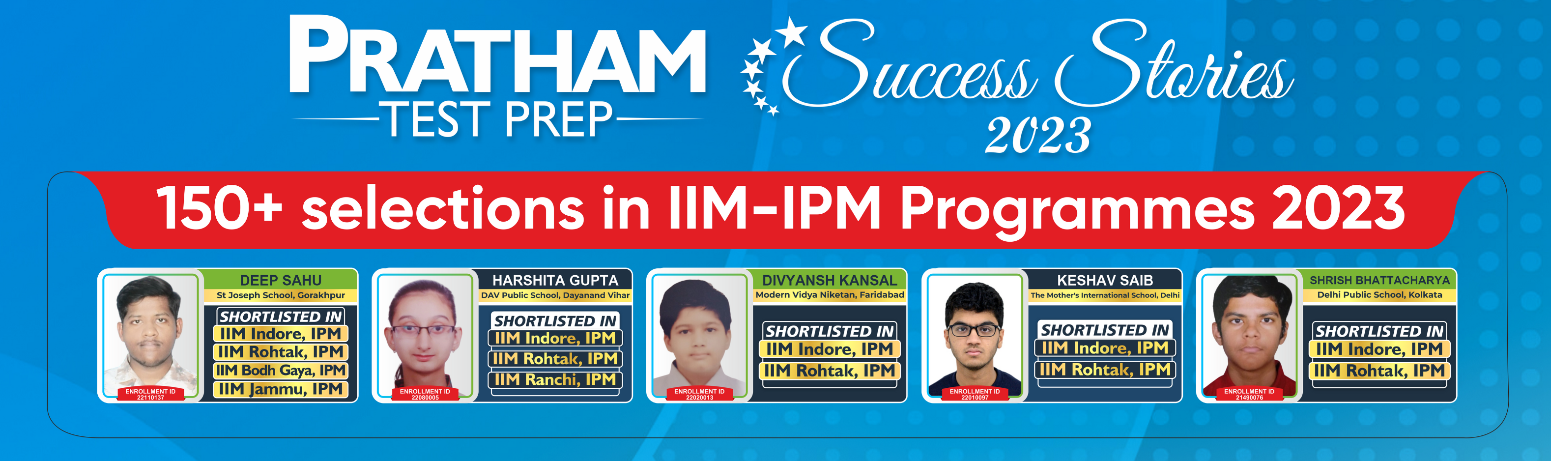 Two year program enrollment Id -17110043 I joined PRATHAM in class 11th as I was keen on giving DU JAT exam and make my career in business management. It has been a wonderful experience, here at PRATHAM The rigorous training, the excellent staff and the exhaustive